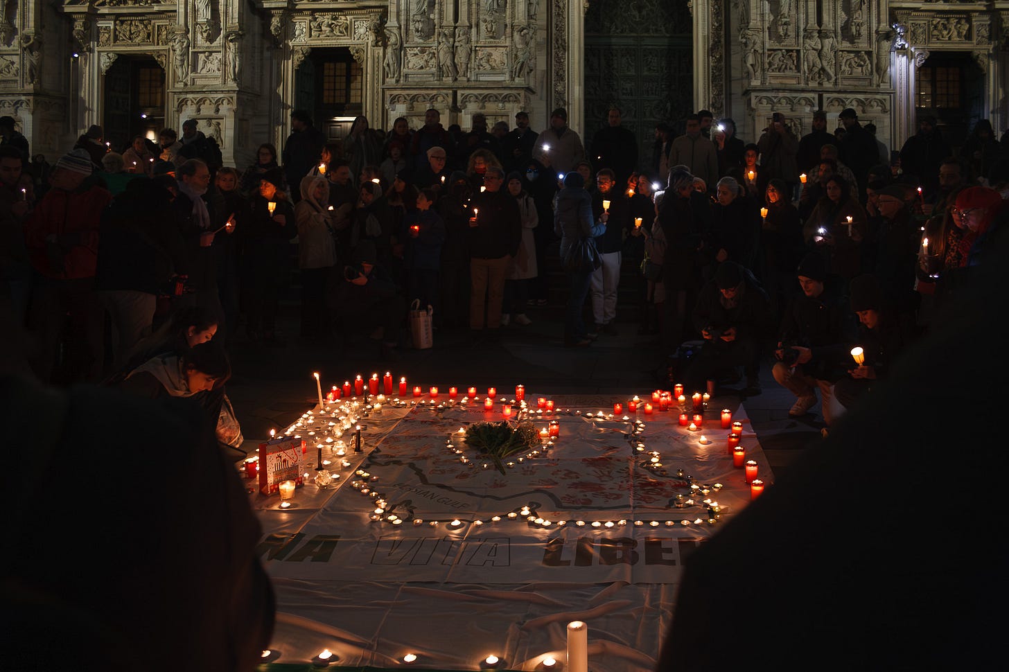 At five in the afternoon, the light began to fade just as the square started to fill, the first candles appeared shy, then denser and denser, until they formed a luminous map laid on the ground in front of the Duomo, a distant, wounded country, rebuilt with unsteady flames in one of the most photographed places in Europe.